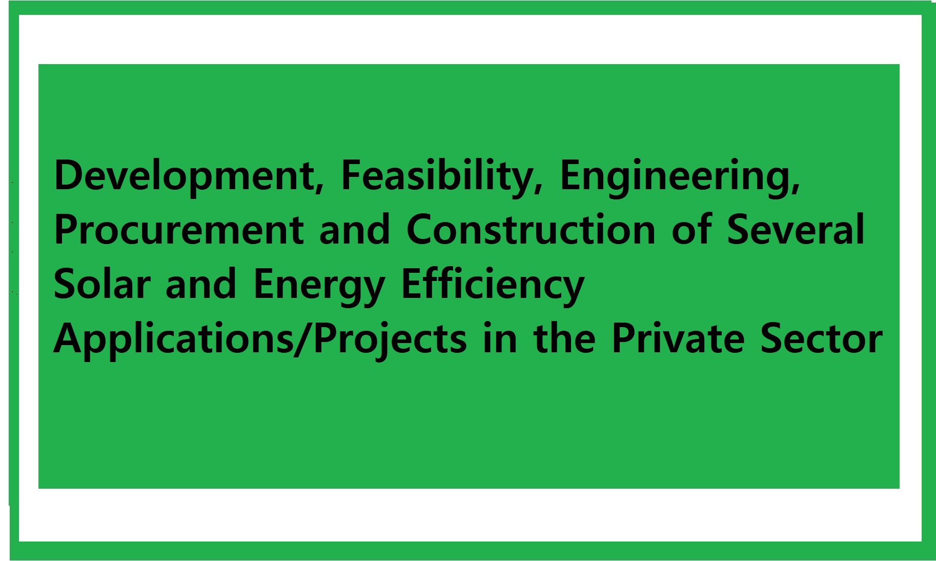 Development, Feasibility, Engineering, Procurement and Construction of Several Solar and Energy Efficiency Applications/Projects in the Private Sector