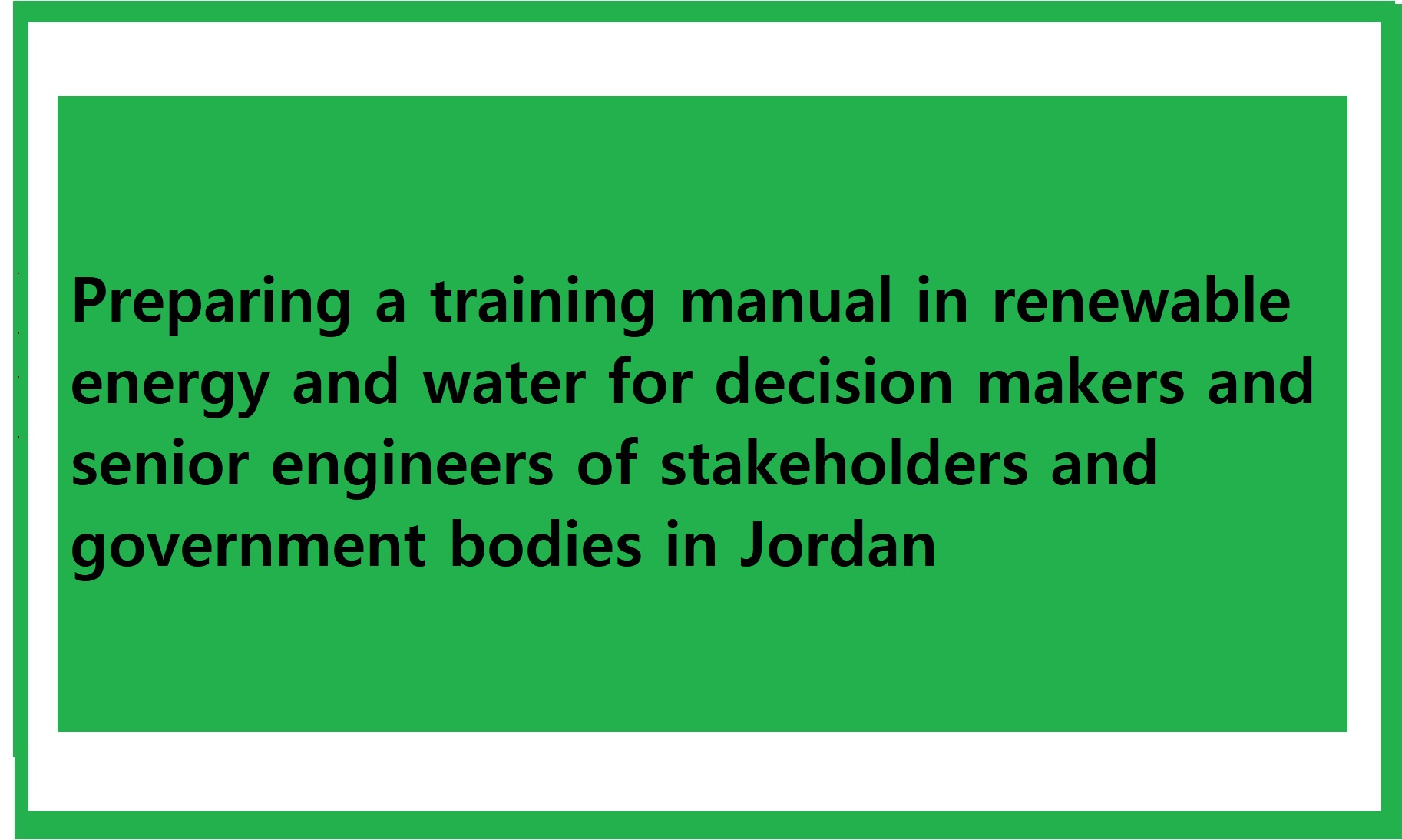 Preparing a training manual in renewable energy and water for decision makers and senior engineers of stakeholders and government bodies in Jordan